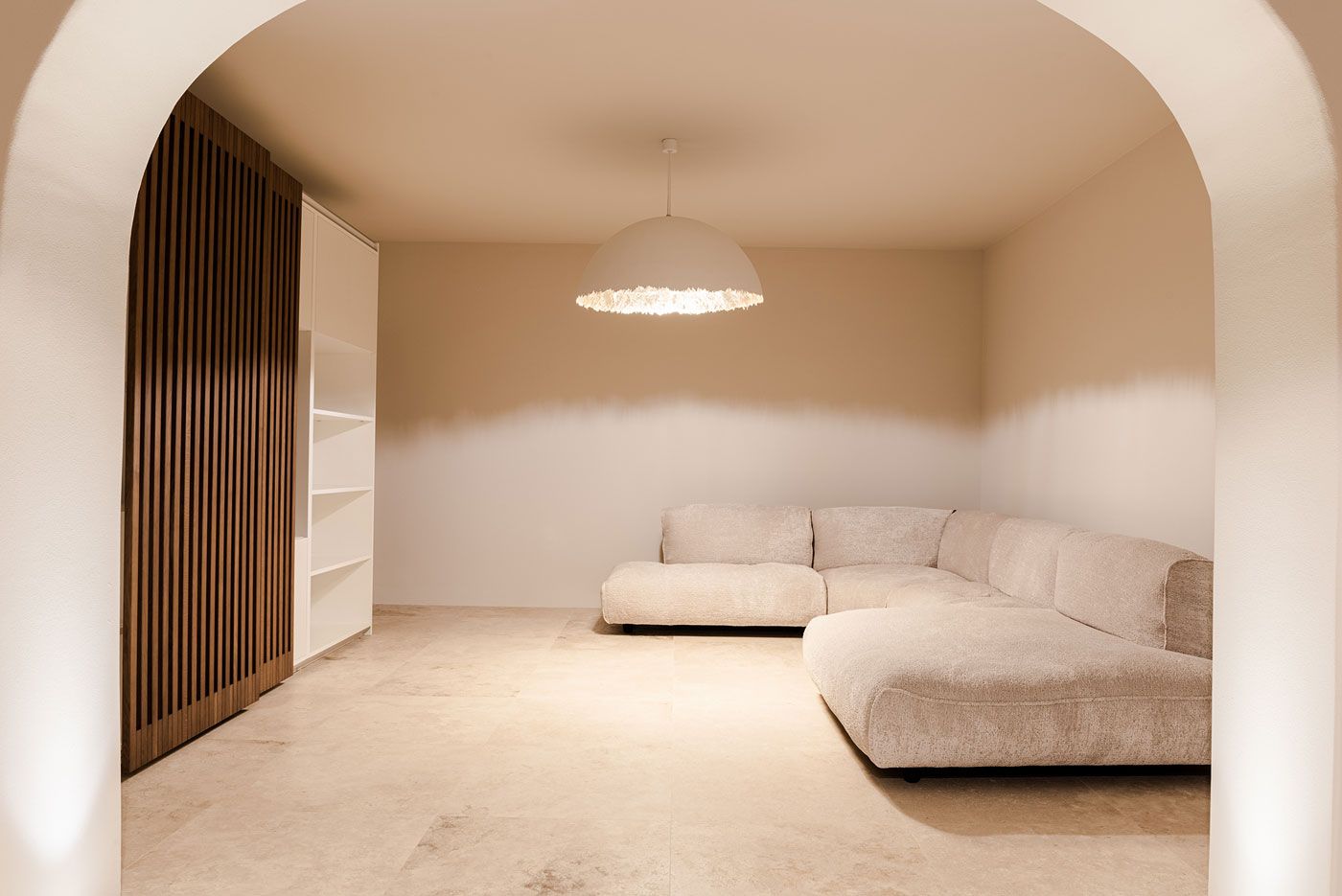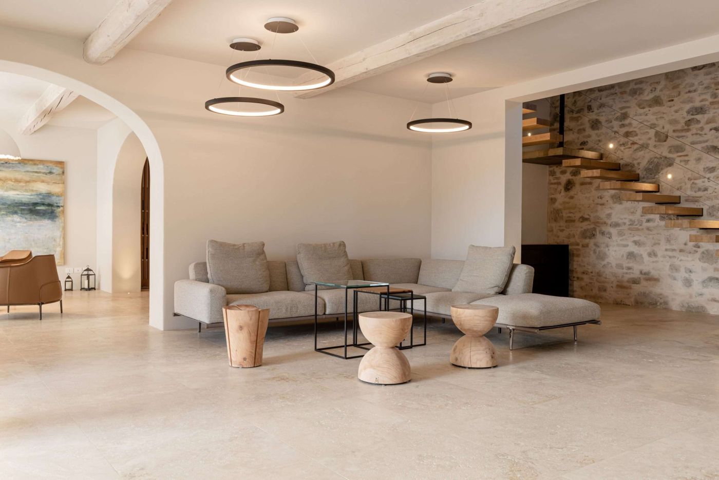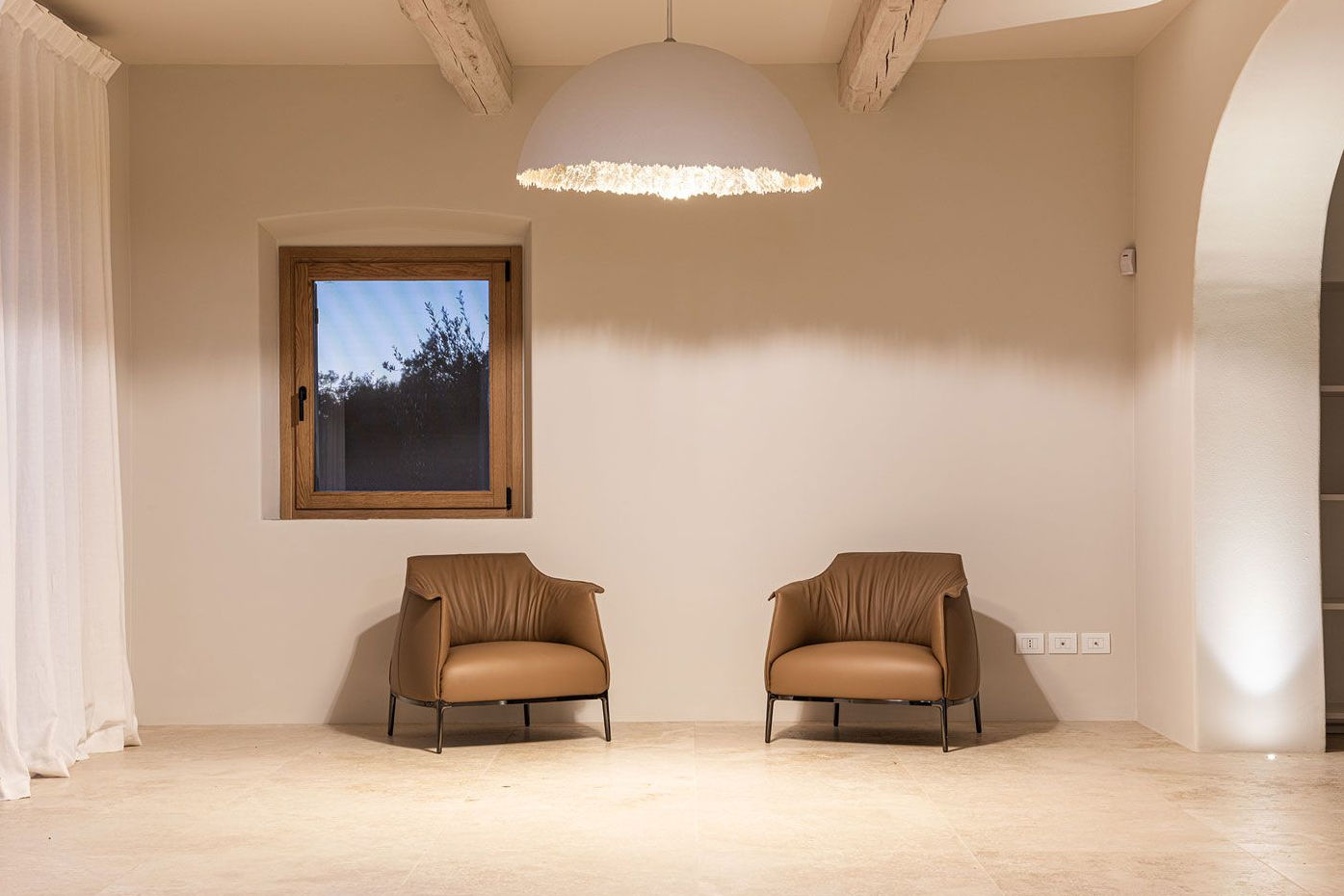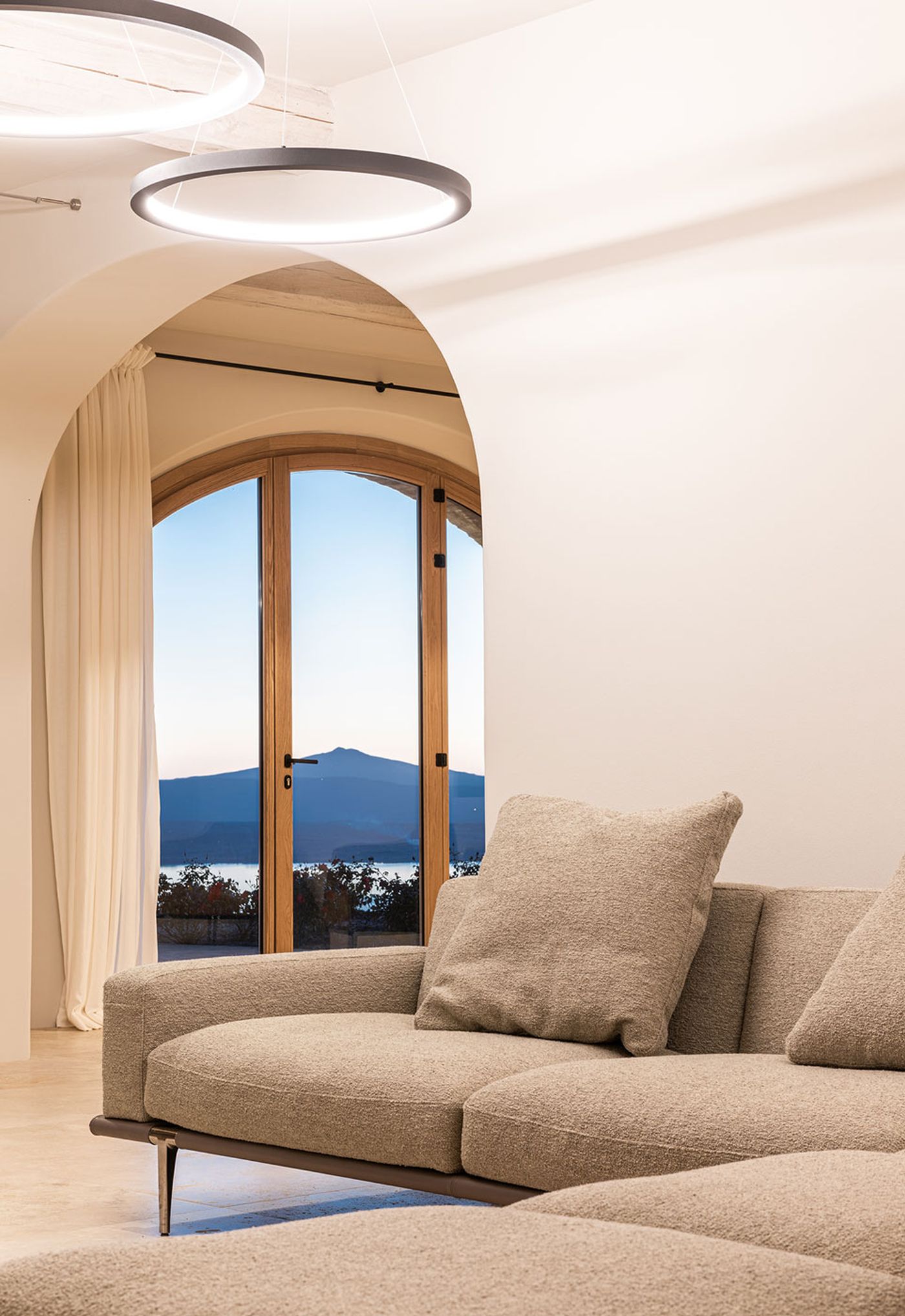 Tomassini Arredamenti took on the task of furnishing this magnificent residence with great enthusiasm. An impeccable transformation, carried out with respect for its authenticity, has given the house a new life. Nestled in the lush Umbrian countryside, the villa offers stunning panoramic views of the lake. The dominant motif of the project was the choice of soft and warm colours, such as off-white and taupe, which give the space a timeless elegance.