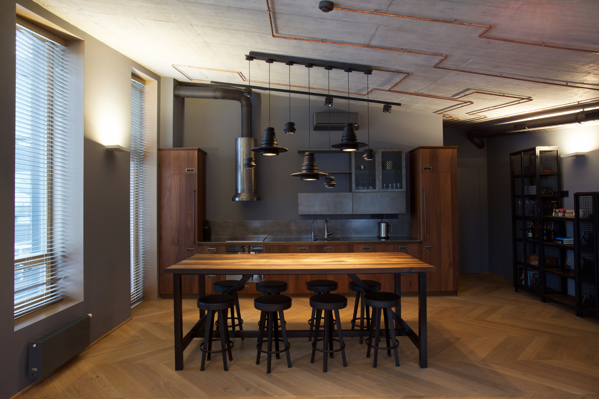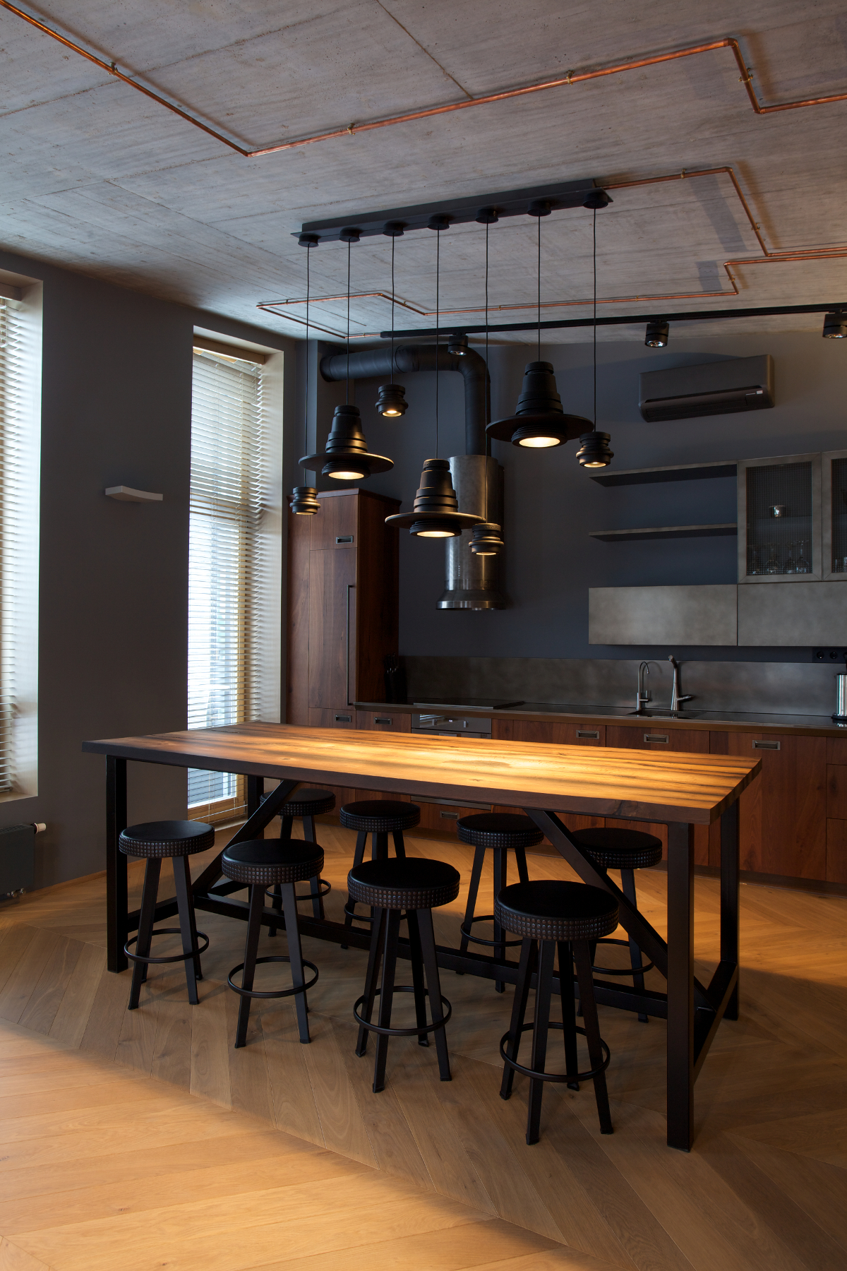 Transparency is a key element of this style: nothing is hidden. Pipes are exposed and run along the ceiling, creating an original and modern decorative motif. This feature is not only an industrial design detail, but also makes the interiors unique and captivating. Contrasting materials and refined details define this house: the result is surprisingly contemporary, in harmony with the urban spirit of the city.
