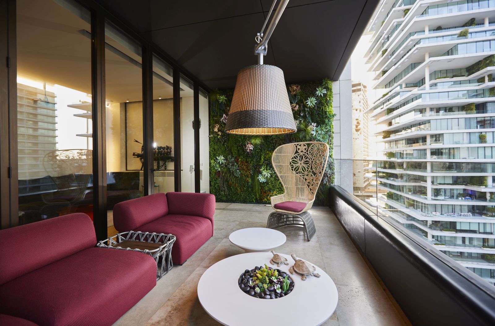 In this project, the warm and vibrant atmosphere of the Middle East blends harmoniously with Italian design: Edra, B&B Italia Outdoor, Glas Italia, Flos are some of the brands selected in the creation of this residence. The aim was to transform a living space and a terrace into an oasis of comfort and relaxation where the Mediterranean climate can be enjoyed all year round.
