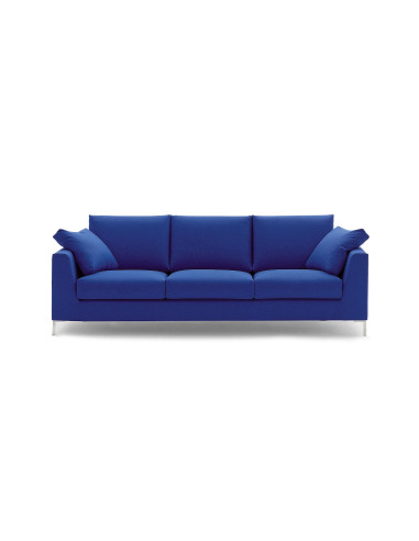 The Aoy sofa by Campeggi, a three-seater maxi with two armrests, features chrome steel legs and a polyurethane frame with a removable cover. Available in various fabrics and colors, this sofa offers a modern design and uncompromised comfort. With its elegant armrests and chrome steel base, it perfectly combines simplicity and visual impact.