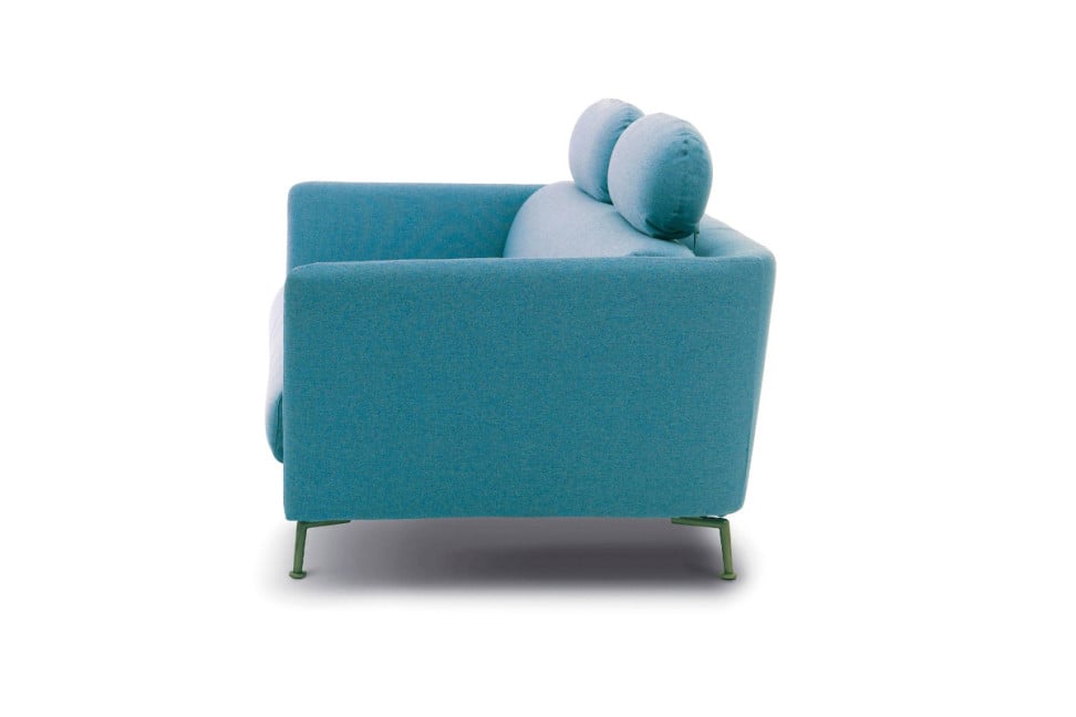 The Brooklyn double sofa bed by Campeggi, designed by Giulio Manzoni, features satin aluminum feet, an electro-welded mesh sleeping surface, and a polyurethane mattress. Available in a variety of removable fabrics and colors, the sofa bed combines retro aesthetics with contemporary details. Its elegant silhouette not only enhances any environment but also ensures lasting comfort.