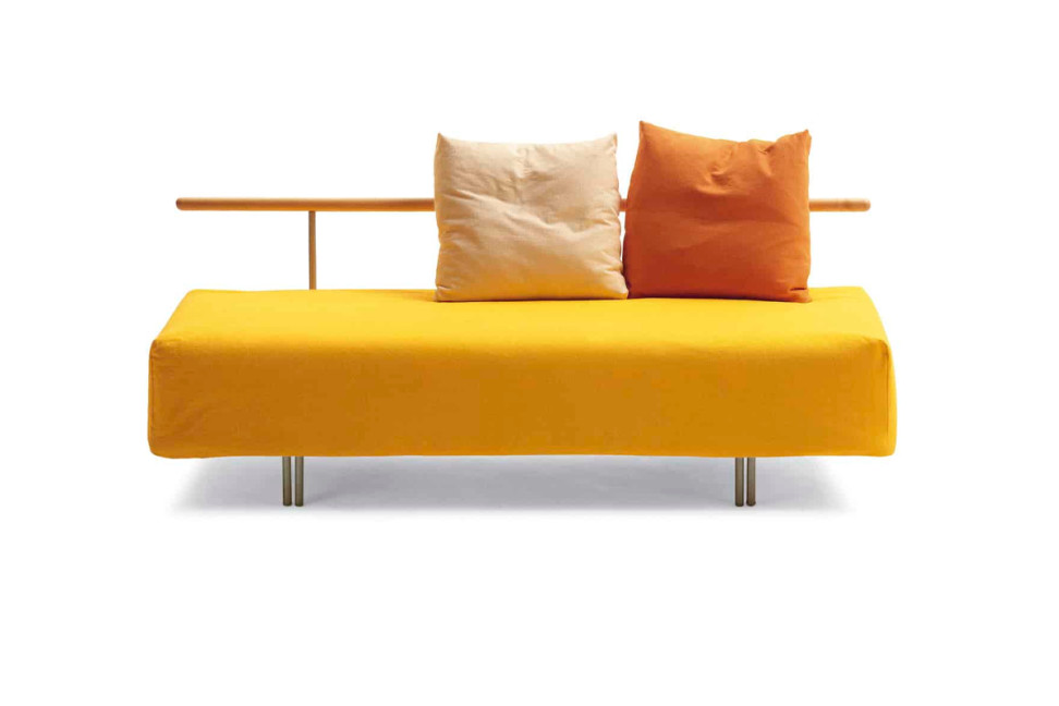 The Dudù sofa bed by Campeggi, fresh and youthful, stands out for its vibrant colors, perfect for cheerful and informal environments, whether urban or rural. Designed to accommodate one or two people, it features an elegant line enriched by a waxed natural maple bar that defines and completes its structure.