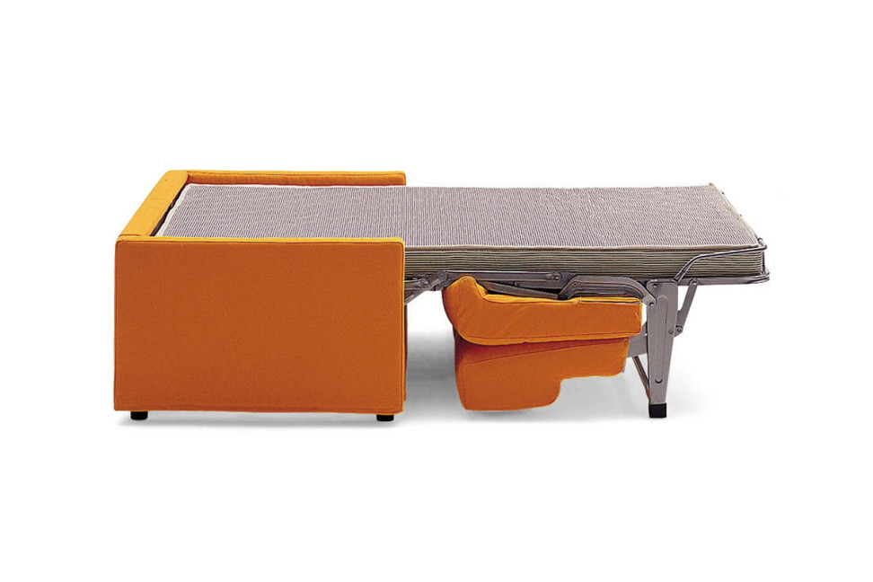 Thanks to its geometric and linear structure, the Go Small double sofa bed easily integrates into any living space, transforming the environment into a welcoming and refined setting. With well-designed technical features, this sofa quickly converts into a comfortable bed, making the transition from day to night simple and practical. The steel frame ensures an attractive design, durability, and reliability over time, even with frequent daily use.