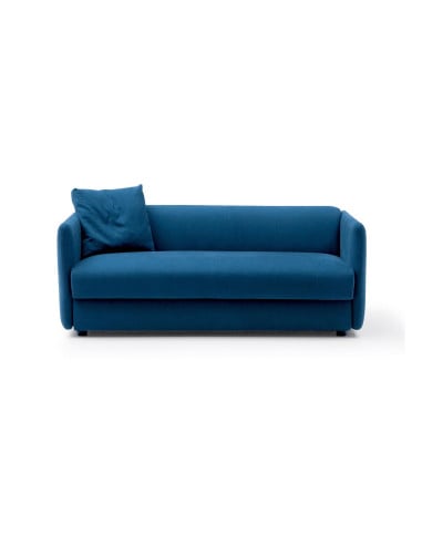 The Ho double sofa bed by Campeggi, with a wooden frame and electro-welded steel mechanism, includes a polyurethane foam mattress. Available in various removable fabrics and colors, it represents an evolution in sofa bed design. With its deep seat and continuous backrest, it combines simplicity and contemporary elegance, offering comfort both as a sofa and a bed.