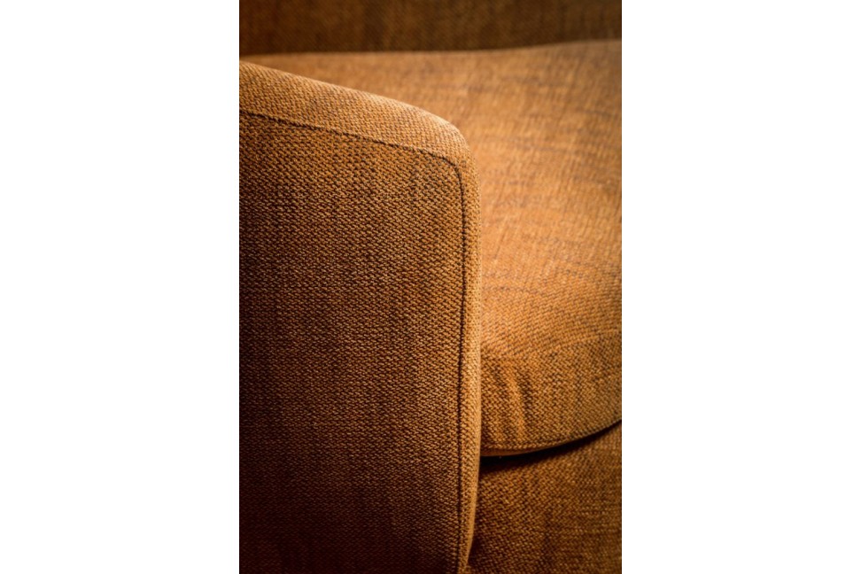 Gabrielle is the line of armchairs, poufs and benches that bears the signature of the Cantori brand. Ergonomic and comfortable, this armchair is characterized by soft lines and round shapes. The Gabrielle armchair is upholstered in fabric or leather and it has a swiveling metal base available in bronze finish.