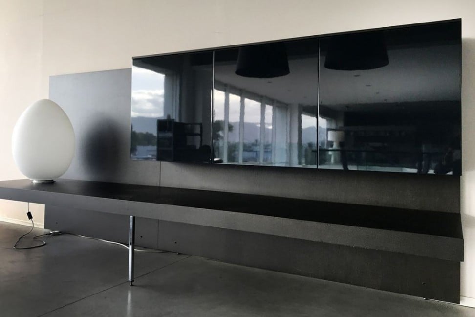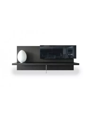 Structure in slate grey wood, doors in black lacquered finish.