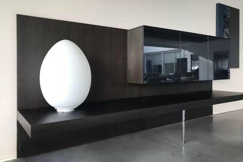 The Sistema Storage Unit on Expo Offer at our showroom has a slate grey wood structure and glossy black lacquered doors.