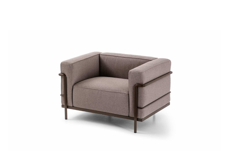 The 3 Fauteuil Grand Confort, Grand Modèle outdoor armchair by Cassina, designed by Le Corbusier, is an example of how the elegance of indoor furniture can be brought outside. The series includes not only the armchair but also two-seater and three-seater sofas and a méridienne. The metal structure is available in various finishes, and the coverings are made from fabrics suitable for outdoor use.