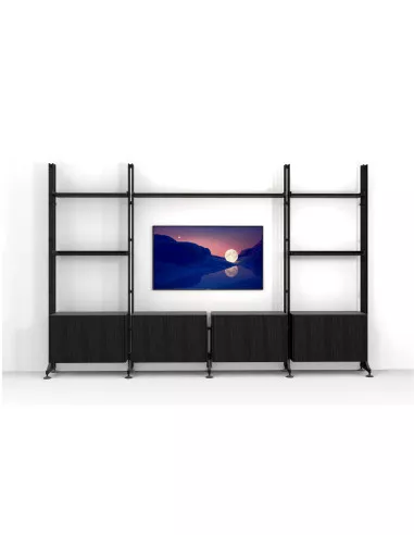 With wall fixing the Cassina's Infinito Wall Pro bookcase becomes even more functional and modern thanks to the possibility of inserting a dedicated container with doors, creating a compartment TV for a screen up to 65 ”. Elegant and finished in gray-stained ash, the Infinito Wall Pro bookcase is perfect for furnishing corporate offices, meeting rooms and representative lounge areas.
