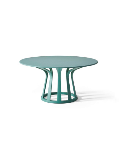 In the Lebeau table's outdoor version, the balance between positive and negative volumes is rendered in aluminum, available in three colors, which is skillfully molded thanks to Cassina's expertise in working with materials. This table features a base with slats spaced apart that bend to create a support for the round ceramic top. The Lebeau Outdoor table is perfect for furnishing your outdoor space in an original and vibrant way.