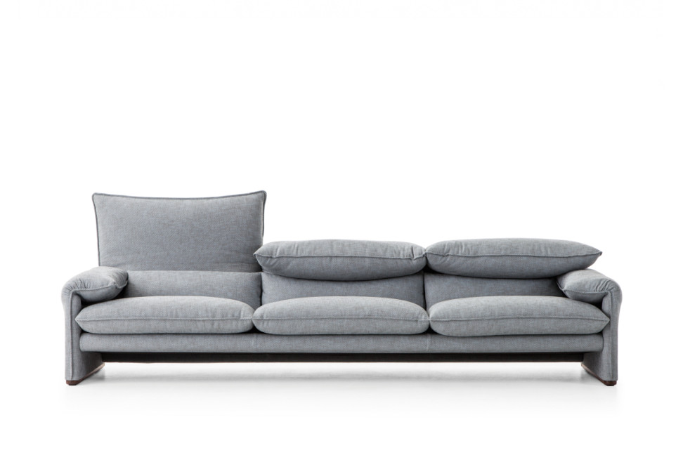Designed by Vico Magistretti for Cassina, the Maralunga 40 Maxi sofa expands the proportions of the iconic model, offering greater depth, ergonomic comfort, and a patented adjustable backrest.