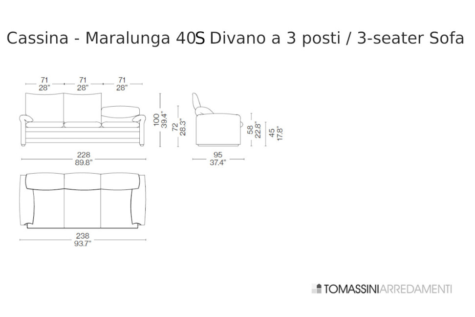 The Maralunga 40-S sofa Cassina is available in various linear sizes, such as: