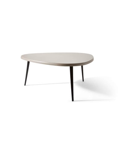 This new outdoor version of the Mexique tables echoes the distinctive forms of the original model: triangular shape with rounded corners and slender legs. The materials used for the Mexique Outdoor Table are designed to withstand weather conditions. The base is made of black powder-coated stainless steel, while the top is made of matt lacquered okumè plywood in different colors.