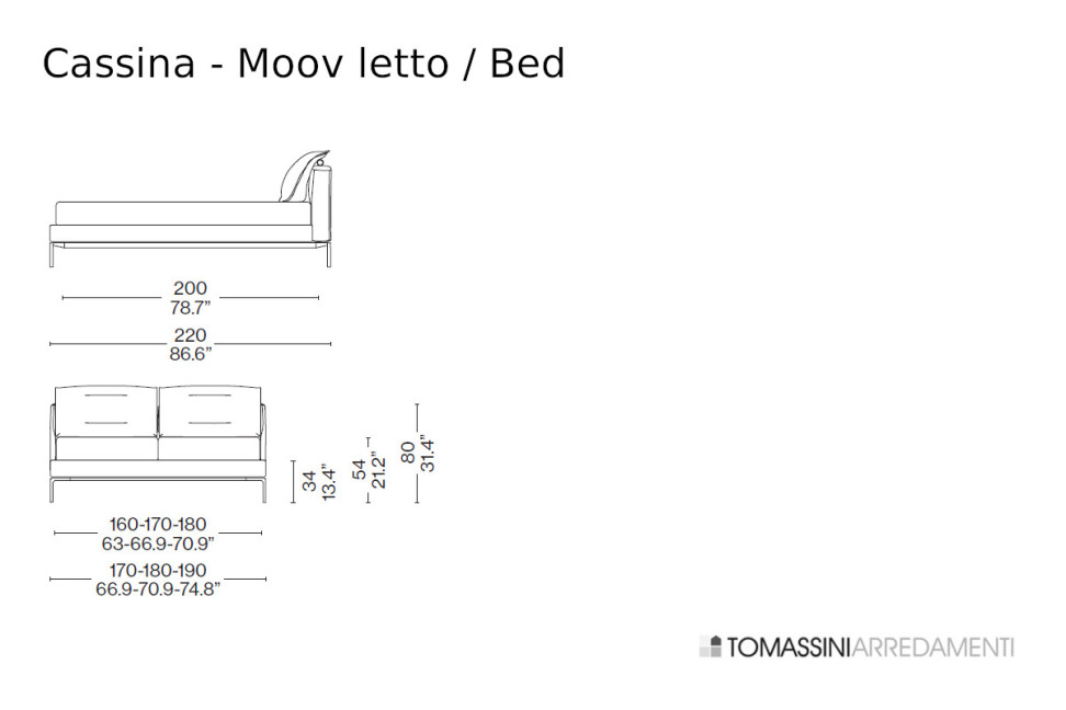 The Moov bed of Cassina is available in various sizes. Among these we find: