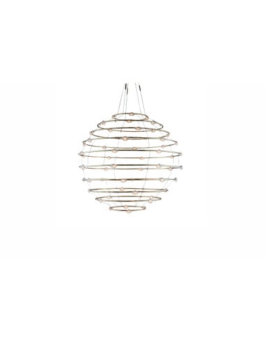 Furthermore, the circles that make up the Petits Bijoux 28 lamp are a symbol of perfection and eternity, another recurring theme in Catellani&Smith production. Along the perimeters of the circles are alternating 28 transparent LED enclosures of different sizes attached to the structure by means of refined brass clips. The lamp is also available in a larger version: the Petits Bijoux 56 hanging lamp.
