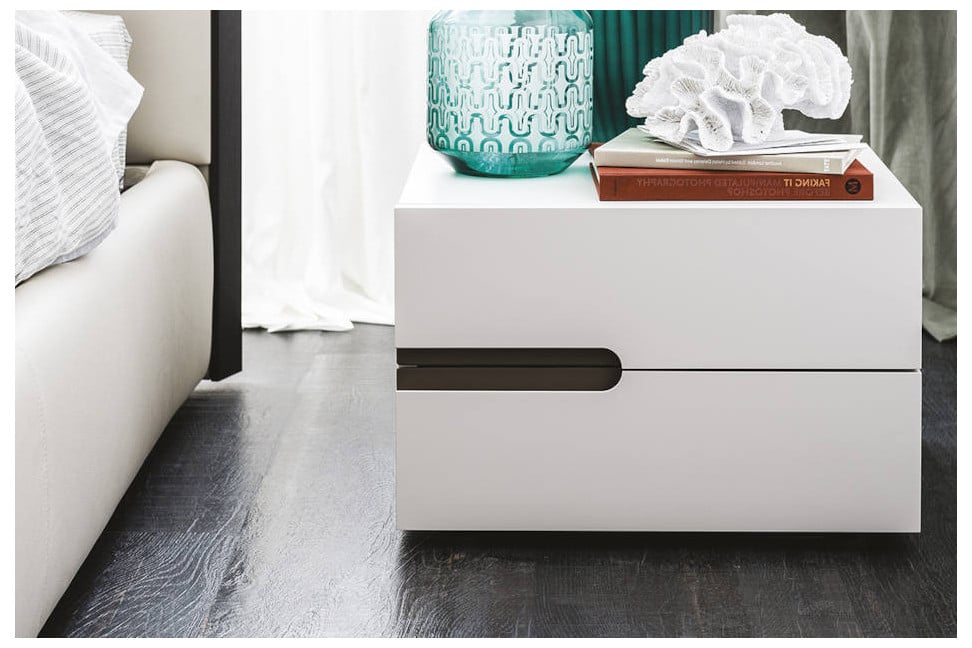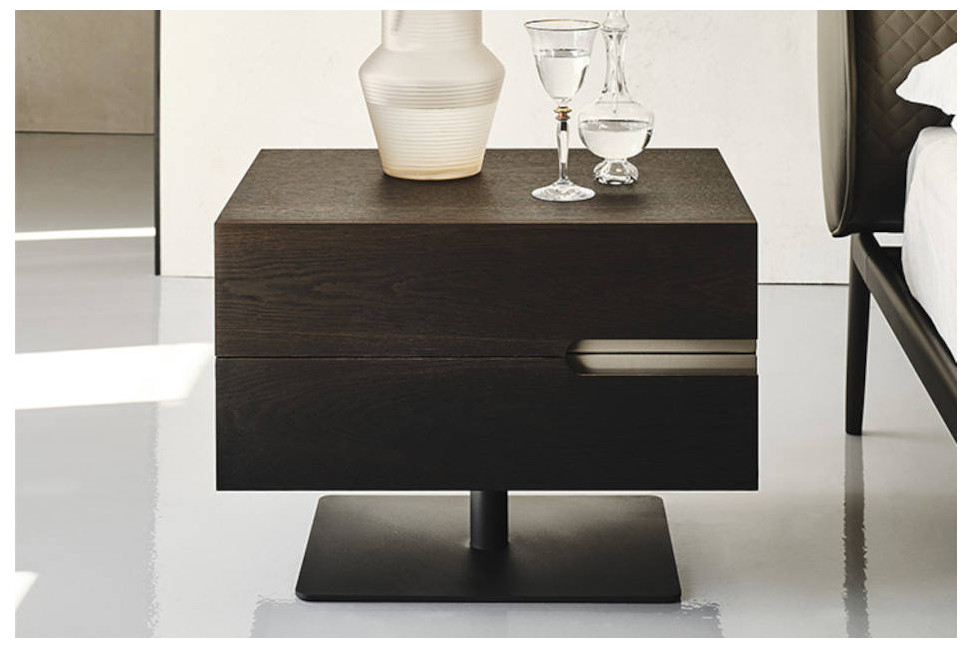 The Ciro night stand was conceived by Paolo Cattelan, son of the founder and a key figure of the company. Ciro is characterized by clean and compact shapes, the only decorative element is the special insert in leather or synthetic leather that gives a touch of liveliness to this night stand.