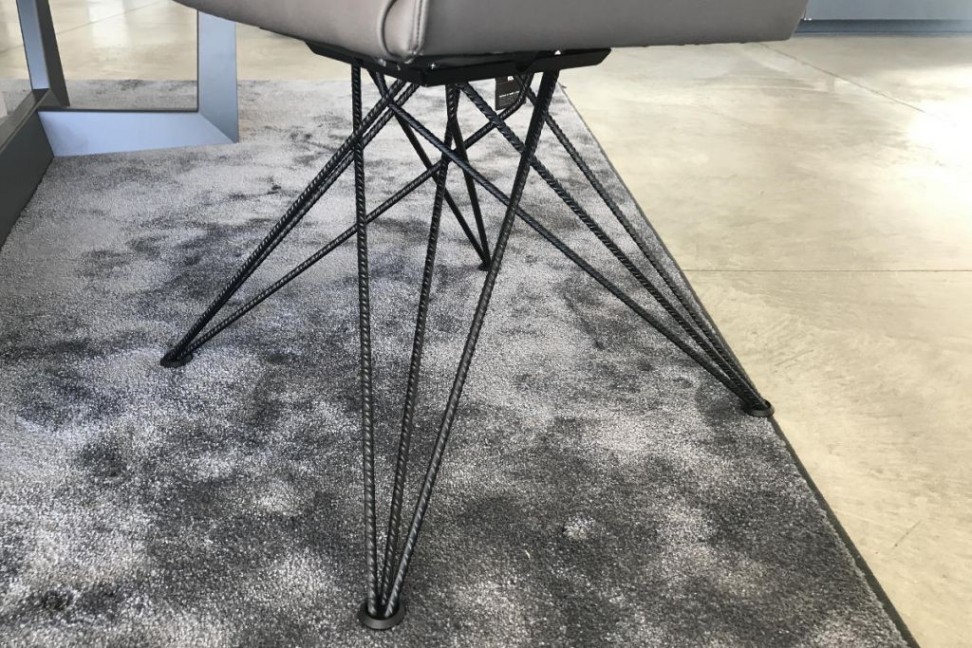 The Flaminia chair, in expo offer in our showroom, is a piece of furniture that combines elegance and modernity, thanks to the combination of the dark gray leather upholstery and the black painted metal base.