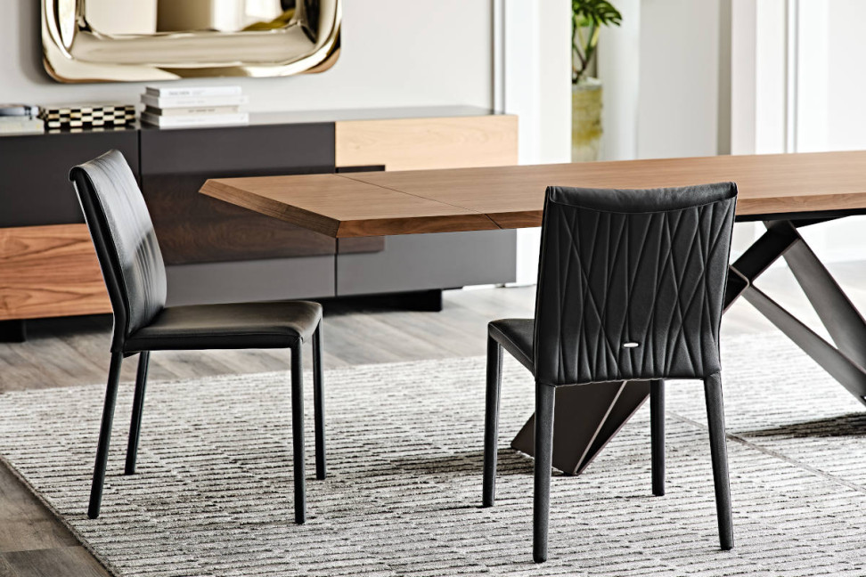 Italia dining chairs, designed by Paolo Cattelan for his company Cattelan Italia, sport a clean, sophisticated aesthetic.
