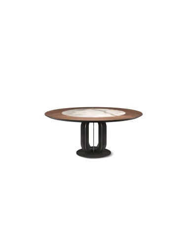 The new line by Cattelan Italia, created by the designers of the Brogliato-Traverso studio, also includes the Soho Ker-Wood table, a furnishing accessory that stands out for its peculiar oval vertically pierced base. This refined design object, suitable for any type of environment, is the perfect combination of high quality materials: Soho Ker-Wood features a base in graphite, titanium or black embossed painted steel, on which rests a wooden top in Canaletto walnut or burnt oak with Marmi ceramic insert, available in the numerous finishes of the Cattelan Italia collection.