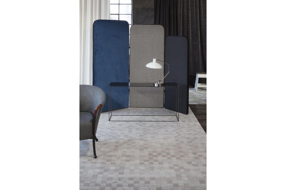 Geometries, shapes and colors are, in fact, the protagonists of Damier 2.0, which is distinguished by the particular play of depth created by the alternation of undyed Himalayan wool tiles and mixed wool and silk ones, where the latter changes in percentage for each square to obtain lighter and darker shades, giving the design movement and dynamism. The rug is hand-made according to traditional Tibetan weaving techniques and is available in five versions: blue, copper, ice, light sleek and dark sleek.