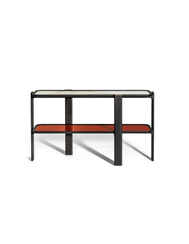 Like every element of designer Lazzeroni's Duo collection, we find in the console table the fusion of the highest qualities of design and manufacture of the two collaborating brands, Ceccotti Collezioni and Poltrona Frau, suppliers of high-end luxury furniture.