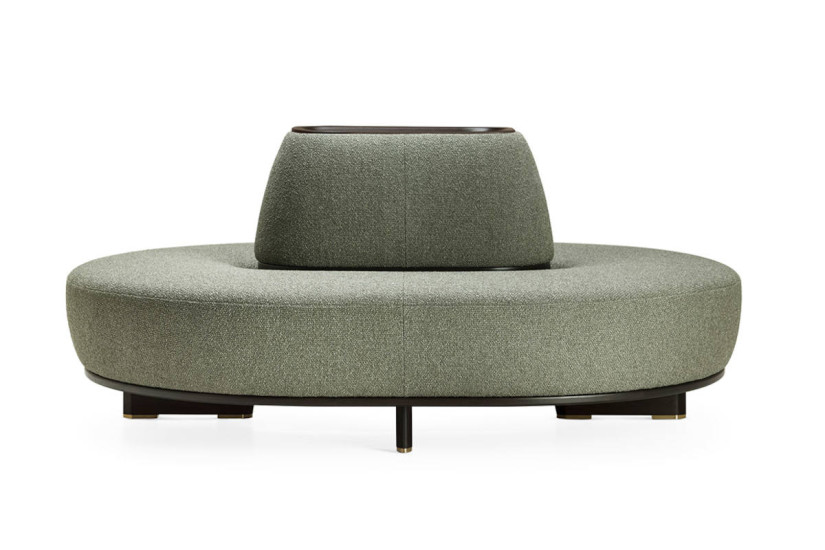 Presented at the Salone del Mobile by Ceccotti, the Icorondò upholstered sofa is designed to furnish public spaces in the hospitality and contract sectors. The Icorondò features a solid American walnut frame with an elliptical shape in the center of which rises a comfortable backrest with a practical tray on top in wood or Calacatta Oro marble. You can choose from a wide range of fabrics and leathers for the Icorondò sofa, as well as there are various finishes available for the walnut base.