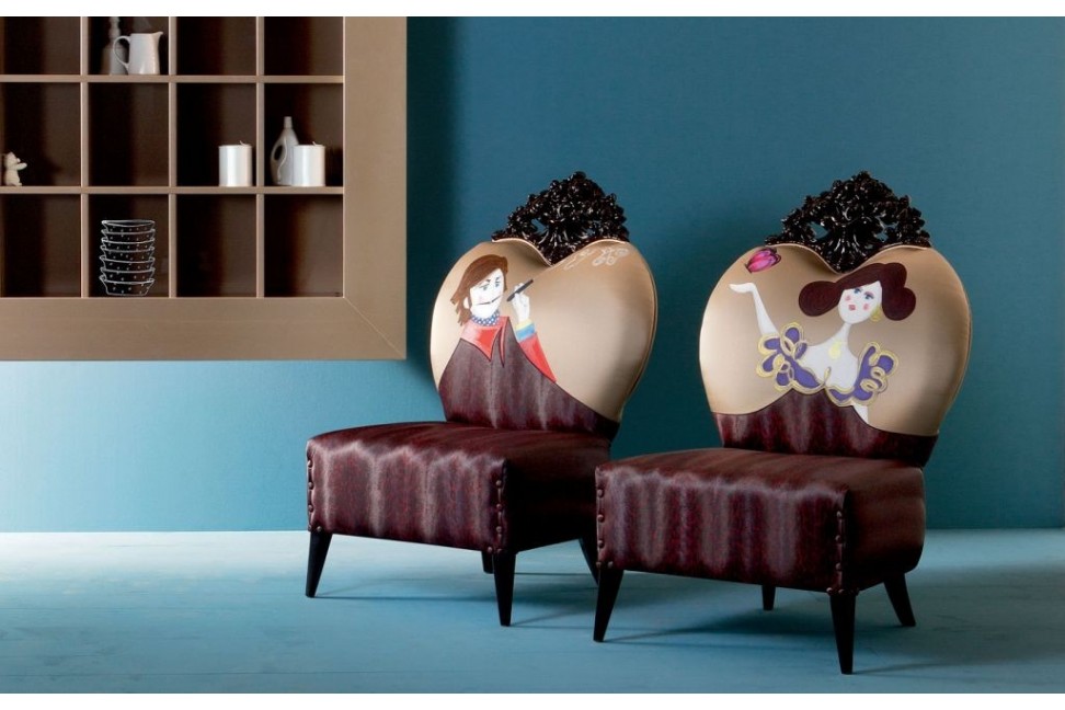 Tizzi armchair is created by Creazioni with an original design. Covered in fabric, it is available in the several colors of the collection and also with particular hand painted drawings. Tizzi stands out for its lively and not ordinary look with which it can easily catch the eye. The armchair is marked by soft and harmonious lines. The padded seat and backrest make Tizzi really comfortable.