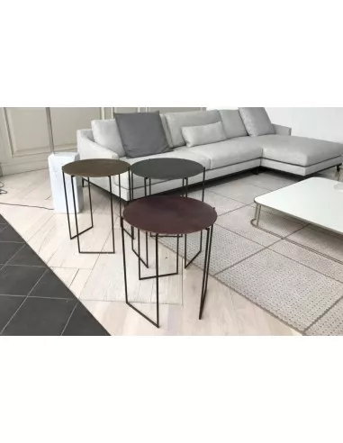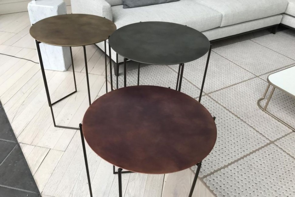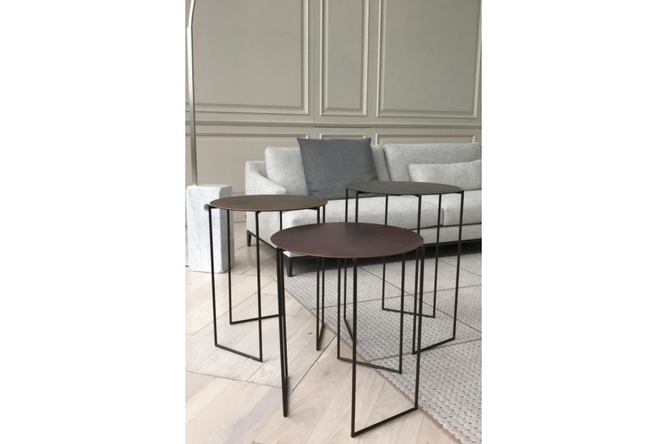 The Band coffee tables, in expo offer in our showroom, are a set of elements with a modern and sophisticated design, in which the combination of different heights and finishes for the top (copper, iron, and brass) creates a harmonious play of lights and contrasts that gives movement to the whole environment.