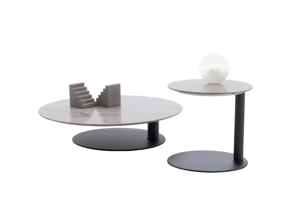 The collection of Kara coffee tables by Désirée, created by designer Marc Sadler, is an elegant series of circular tables.
