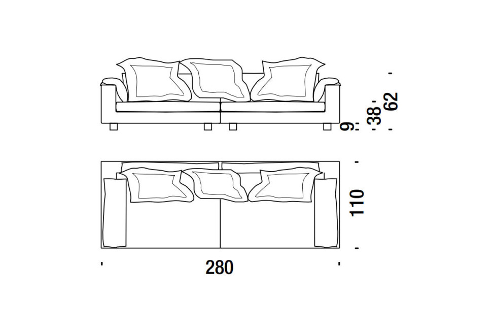 Dimensions: cm.280x110x62h (seat height: cm.38)
