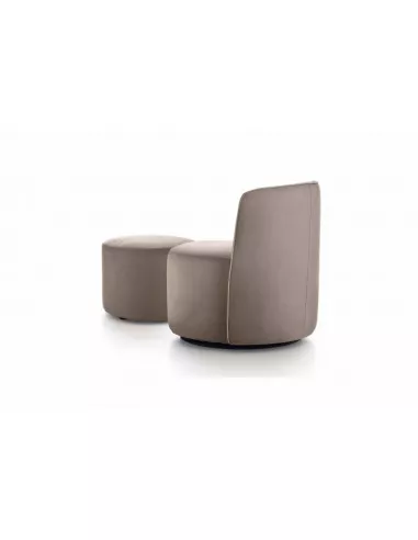 Stefano Spessotto and Lorella Agnoletto design the Chloè small armchair for the Made in Italy brand Ditre Italia. Soft lines and abundant padding outline the informal character of this armchair, which can be combined with the pouf from the same collection. The Chloè small armchair is available both with foot and in the version with swivel base. The upholstery is available in completely removable fabric or in leather.