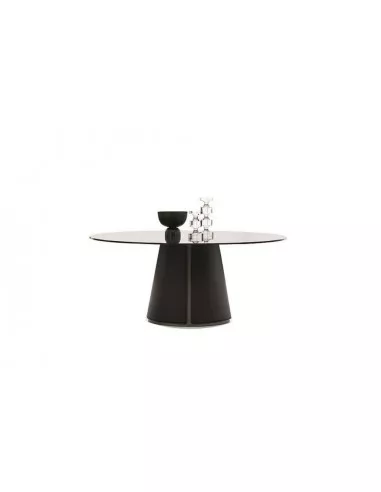 The Claire table is one of the novelties signed by the Italian furniture brand Ditre Italia and presented at the 2019 Milan Design Week.Born from the creative mind of the designer Daniele Lo Scalzo Moscheri, Claire is able to give personality and elegance to the living area thanks to the winning combination of precious materials and formal cleanliness. In fact, both the top and the base take up the simplicity of the circle and enhance it through the materials used: the round top in transparent or smoked glass, with a light and refined look, is supported by a metal base with a fine finish in leather or in hide leather, which does not cover the entire structure, but leaves uncovered some thin transversal parts and a perimeter part at the bottom of the base. These last two details highlight the recurrent circularity in the entire structure and contribute to harmonize the table base both with the top and with the other elements included in the homonymous collection, such as the chair.