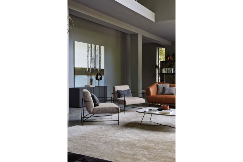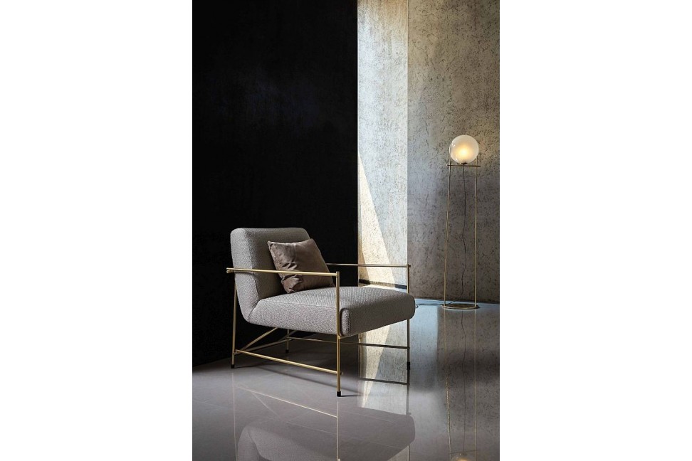 Kyo was born from the project of the designers Stefano Spessotto and Lorella Agnoletto for the Made in Italy brand Ditre Italia. This armchair stands out for the volume of the seat and back that seem to be suspended, thanks to the lightness of the metal structure. The upholstery of the Kyo armchair is available in a wide range of fabrics and leathers and also in the mix version; for the metal structure it is possible to choose between a black, gold or light brown finish.Ditre Italia
