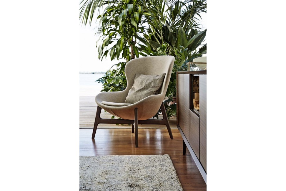 Born from a project by Edi & Paolo Ciani Design, the Round armchair stands out for its enveloping and welcoming shapes. This armchair is proposed by the Ditre Italia brand in numerous variants: with a fixed wooden base in eucalyptus or gray wood stained, with a swivel metal base in anthracite or dark brown lacquered, with a fixed metal base in black or black chrome. The Round armchair is available with upholstery in fabric, leather, or in a combination of the two.Ditre Italia