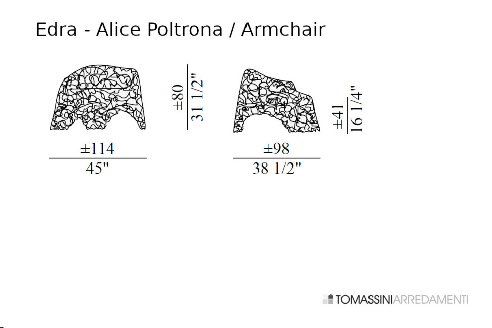 The Alice Armchair is available in the following dimensions: cm. 114x98x80h.