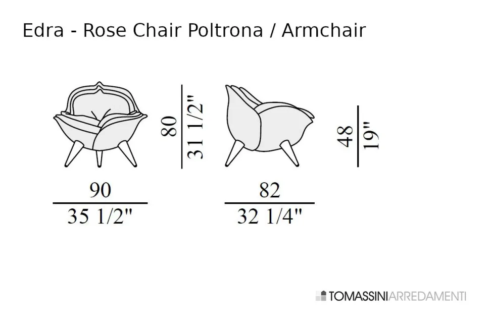 The Rose Chair is available in these sizes: cm. 90x82x80h.