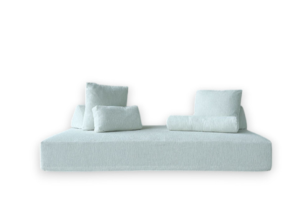 The Sherazade Outdoor Sofa by Edra, designed by the renowned designer Francesco Binfaré, is designed to be outdoors, but has the heart of a bed. The base is wide, cozy, covered with soft, durable padding. The pillows are many, in different shapes. Some support, others cuddle. They can be moved according to one's needs. There is no front or back: you choose how to use it.