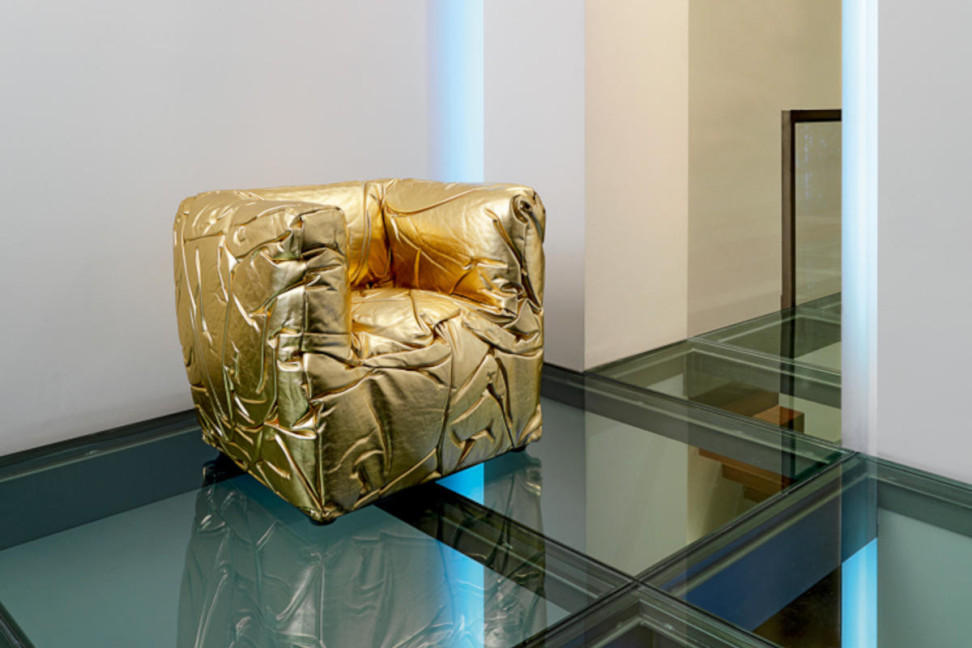 The Sponge armchair by Edra, created by Peter Traag, is made using a process in which the leather covering, cut abundantly, takes on folds adhering to the padding in a different way each time; therefore, each produced armchair is a unique piece.