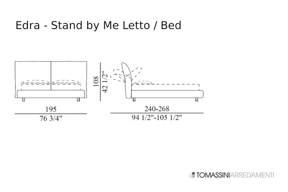The Edra Stand by Me Bed has the following dimensions and configuration