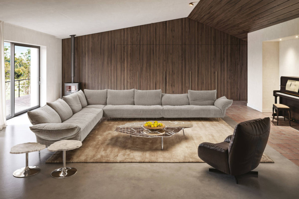 Comfort: The comfort of the Standalto sofa is ensured by the large size of its backrests, armrests, and seats, while the cushions offer exceptional softness thanks to the feather and Gellyfoam® filling.