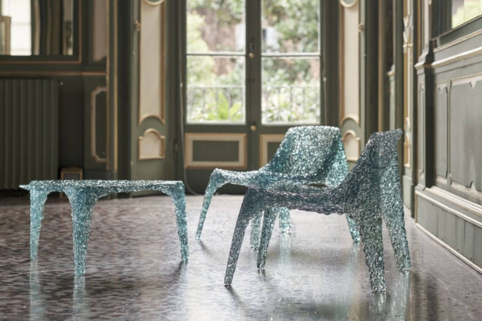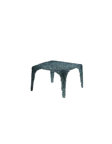 Veronica Low Table is an ideal table not only for elegantly furnishing but also for illuminating the space in which it is placed: the transparency of the polycarbonate in green, reminiscent of the classic shades of natural glass, means that when hit by sunlight or other light sources, it can glow with infinite tones. Each product is expertly handcrafted by Edra, making it unique and special. The Veronica Coffee Table is available in three different versions: one irregularly shaped with three legs, one square, and one larger rectangular. An armchair completes this eclectic collection.