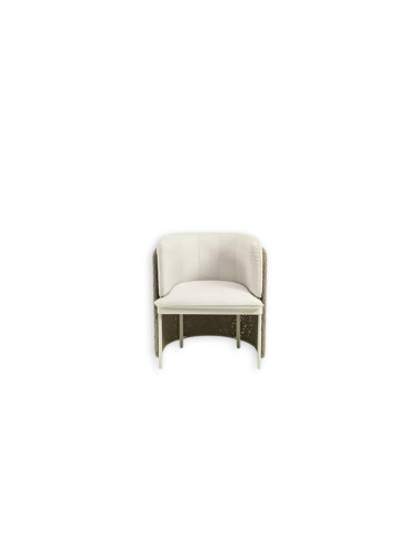 The Esedra armchair by Ethimo, designed by Luca Nichetto, is a combination of aluminium and teak with synthetic fibre, created using a special technology that reproduces the handcrafted sensations and warmth typical of natural fibre weaving, resulting in refined, welcoming solutions that evoke atmospheres of relaxation and wellbeing. A complete line of furniture in which different materials interact with each other with elegance and personality.