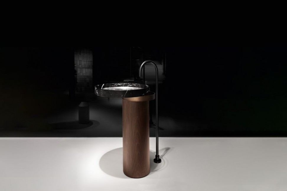 The Eccentrico sink is designed by Victor Vasilev for the brand Falper, and is proposed in two solutions: countertop or column.