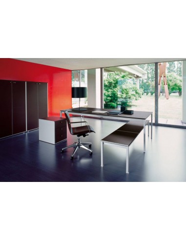 The Bianconero Corium Oak collection, introduced by the Italian company Fantoni, is composed of a series of desks, tables and storage unit that stand out in any space thanks to their strong visual impact and a simple and elegant design.Black and white, lacquered Mdf, transparent glass, frosted glass and wood, this collection offers many finishes to enhance the personality of any type of work space. Fantoni realizes three different collection for every type of personality: the Corium executive desk, upholstered in high-quality leather in a wide range of colours; the Bianconero executive desk available with MDF top, in white or black colour, or in transparent or frosted glass; and finally the Oak executive desk with a warm and welcoming wooden top.