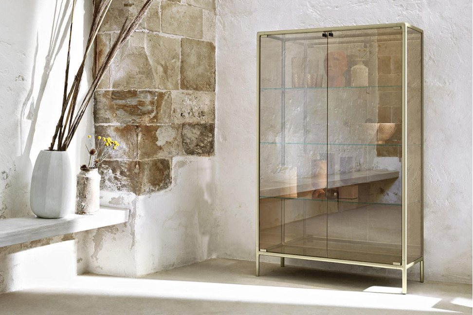 Standing out distinctly from other living room furniture, the Echo showcase designed by the Wanders studio is a true piece of furniture that can bring style and elegance to an entire room. In addition to its spaciousness, the Echo is characterized by the use of high-quality materials: the metal ensures strength and durability over time, while the tempered glass doors add a touch of brightness and luxury. The body of the showcase and the doors are made of 6 mm extralight, smoked, or bronze glass, fused and tempered, with shelves in 8 mm tempered extralight glass, also available in flat (non-fused) and semi-reflective glass.