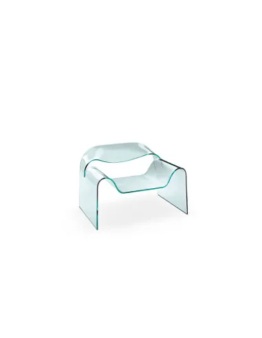 The Fiam Ghost Armchair, developed by Italian designer Cini Boeri in collaboration with Tomu Katayanagi, is a masterpiece of design crafted entirely from 12 mm curved glass. This all-glass Ghost Armchair, with its modern lines and unique construction, is perfect for those seeking a unique piece in their living room. The armchair's name, "ghost," comes from the fact that sitting on it gives the illusion of floating in the air like a ghost, due to its total transparency.