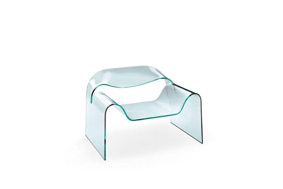 What sets the Cini Boeri Ghost Glass Armchair apart from all other armchairs is its uniqueness and the innovation it embodies: it's no coincidence that it's exhibited in museums around the world, from the MoMA in New York to the Galleria Nazionale in Rome. Born from Cini Boeri's desire to push the boundaries of materiality, this armchair won the Compasso d'Oro Lifetime Achievement Award, entering the history of international design. Made from a single sheet of crystal cut using Paser technology and curved using dynamic molds, the Ghost Chair, more than thirty years after its debut, continues to excite and surprise.