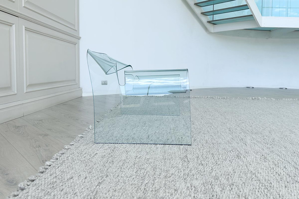 The Ghost Armchair, designed for Fiam by Italian designer Maria Cristina Mariani Dameno, known as Cini Boeri, is an elegant, minimalist, and undoubtedly innovative piece of furniture. The Ghost armchair is made entirely of tempered glass, from the frame to the backrest: a material that gives it an ethereal and light appearance. Thanks to its complete transparency, when you sit down, it almost feels like you are suspended in the air, creating a surreal experience and a magical effect.