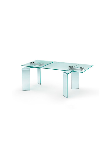 Technical Features: Extendable table with 15 mm tempered glass top; detachable glass legs.