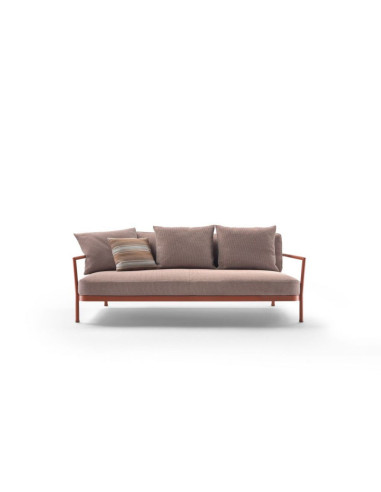 The Camargue outdoor sofa is the ideal element to furnish any outdoor space as it features a structure with embracing lines made of aluminium, a material that is particularly resistant to atmospheric agents. Moreover, as it is practical and lightweight, multiple structures can be stacked for easy and functional storage. The frame is epoxy powder coated, available in smooth and embossed finishes, in a range of refined colors that are perfect for elegant combinations with the removable upholstery of the soft seat and back cushions filled in polyester fiber.